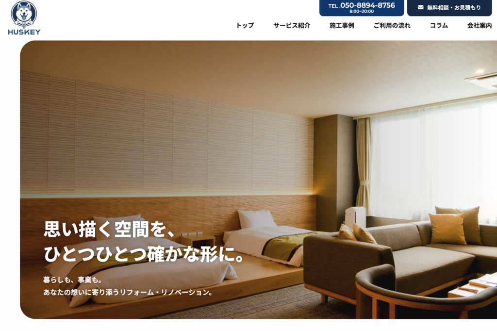 株式会社HUSKEYは、住宅の内装工事だけでなく、店舗や宿泊施設のリノベーションまで相談しやすい会社です。