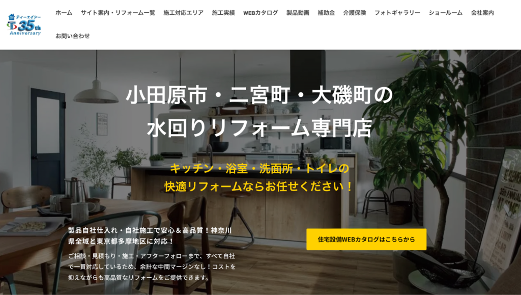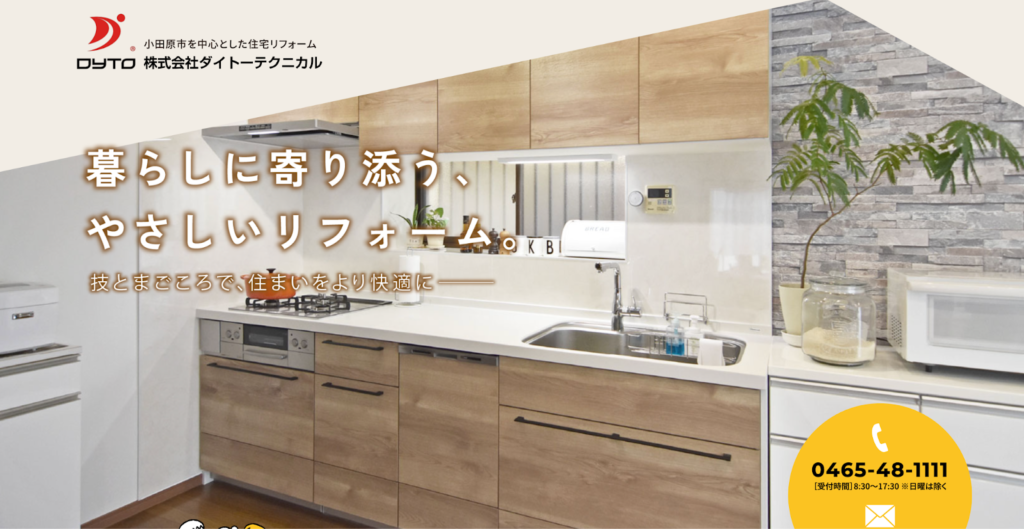 小田原拠点の地域密着型として、当日の現地調査にも対応可能と案内しており、水回りを含む部分改修から空間全体の見直しまで、一社でまとめて相談したい場合に向いています。
