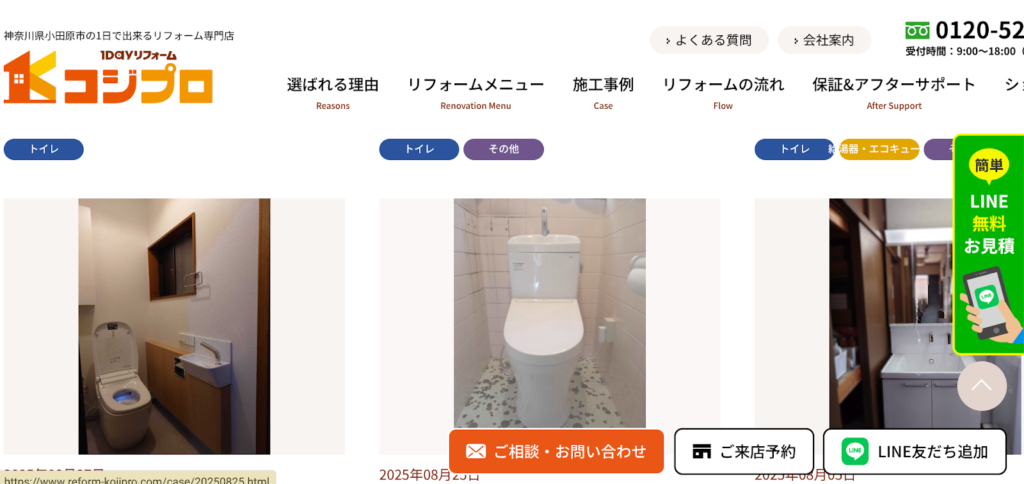 LINEによる無料見積もりや、工期を明確にした透明性の高い施工事例の公開など、忙しい現代人のニーズに徹底して応えるサービス体制が整っています。生活への影響を最小限に抑えつつ、一流メーカーの設備へリーズナブルに刷新したい方に最適な選択肢です。