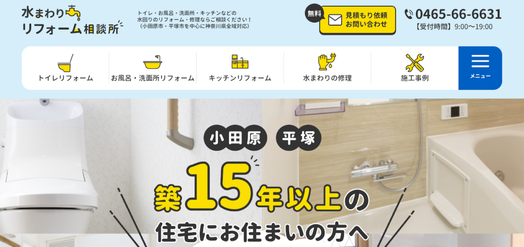 たぶち設備が運営する「水まわりリフォーム相談所」は、神奈川県小田原市・平塚市を中心に地域密着型のサービスを展開しています。