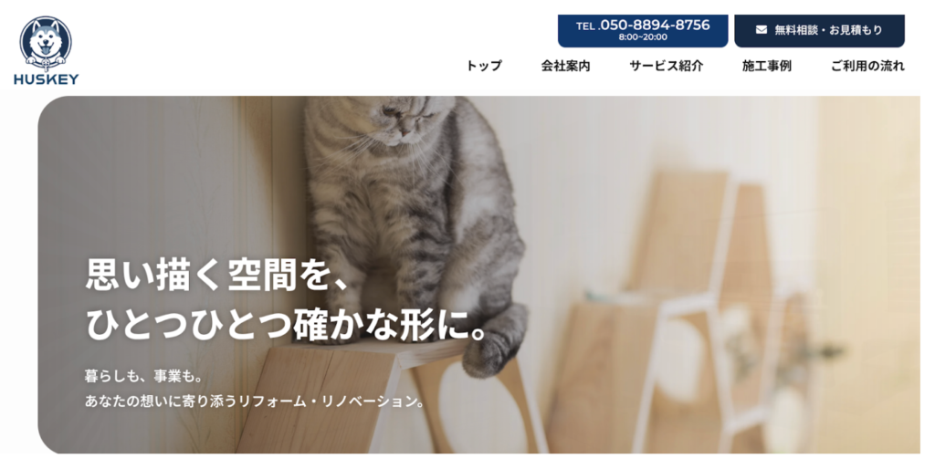 株式会社HUSKEYの特徴は、一般的な住宅リフォームに加えて、ペットと暮らす住空間の設計、自宅サウナの設置、宿泊施設・店舗のリノベーションまで対応領域を広げている点です。