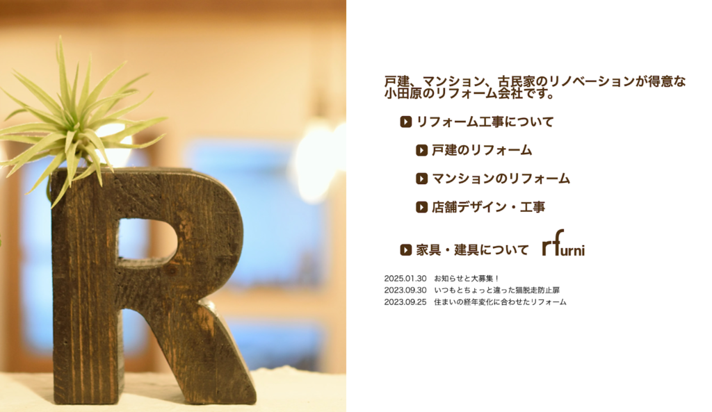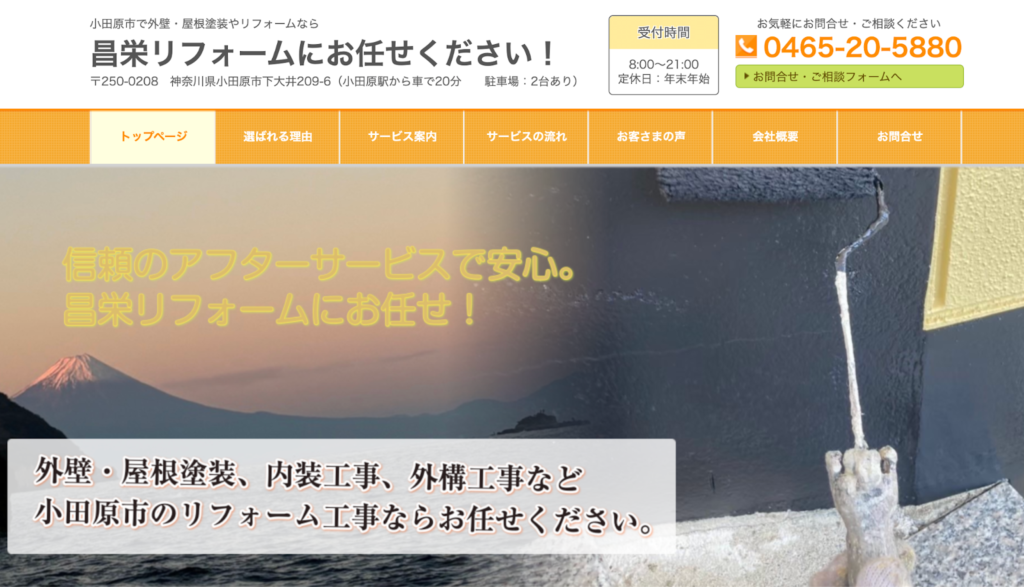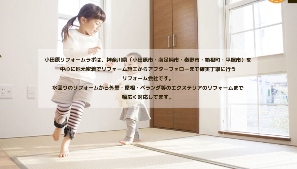 提供形式小田原市周辺を中心とした個別相談型のリフォームサービス。問い合わせフォームや電話で相談でき、戸建て住宅向けの外壁・屋根塗装、水回りトラブル、内外装工事などに対応。